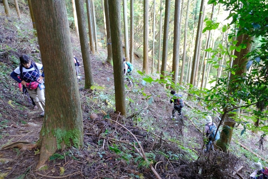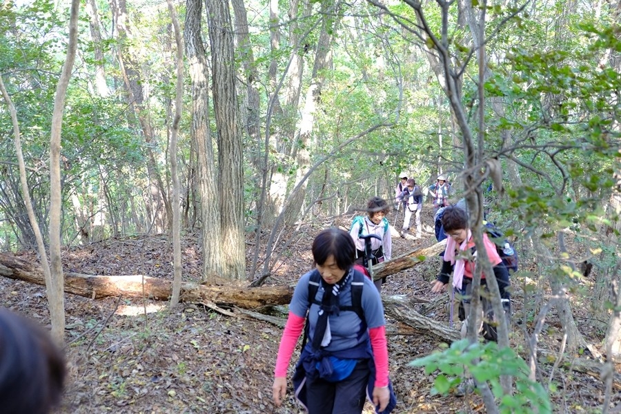 出発して1時間ほどすると、杉林から雑木の林へと変化して倒木などが道を塞ぐことが多くなる。