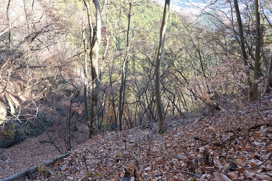 途中から下を見下ろすとほぼ垂直。落ちたら大変。