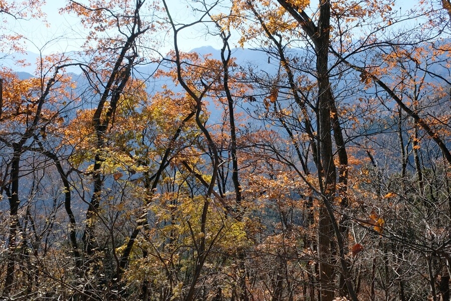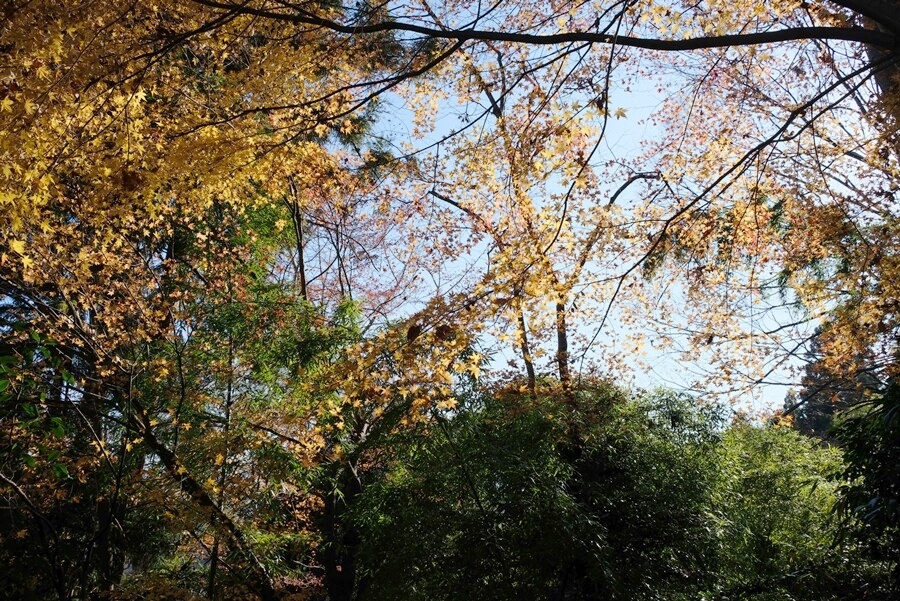 名残の紅葉が陽に輝いていた。