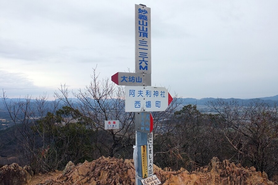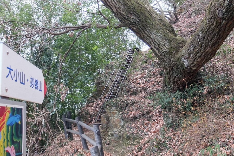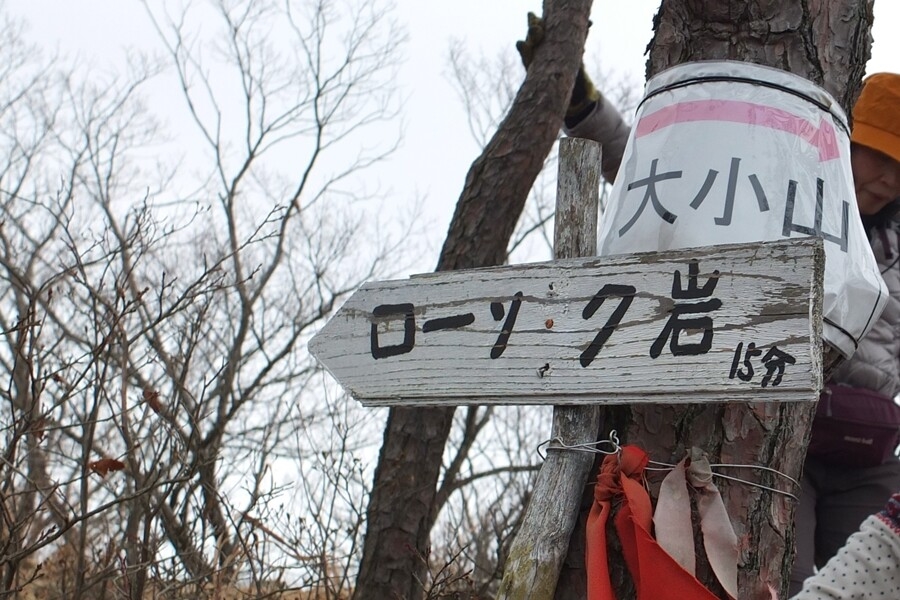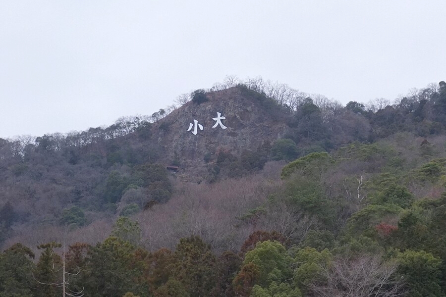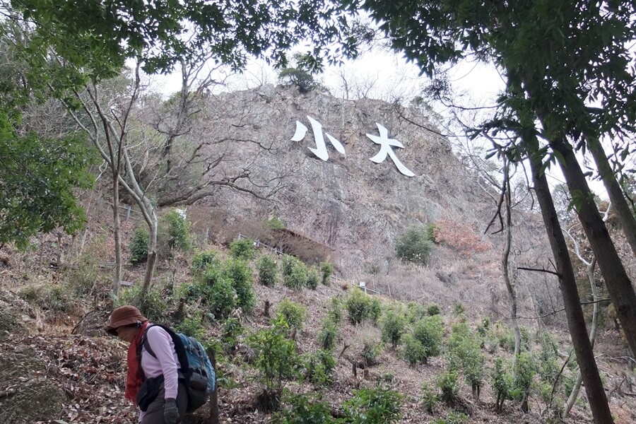 大小山は岩肌に取り付けられた看板が特徴だ。
