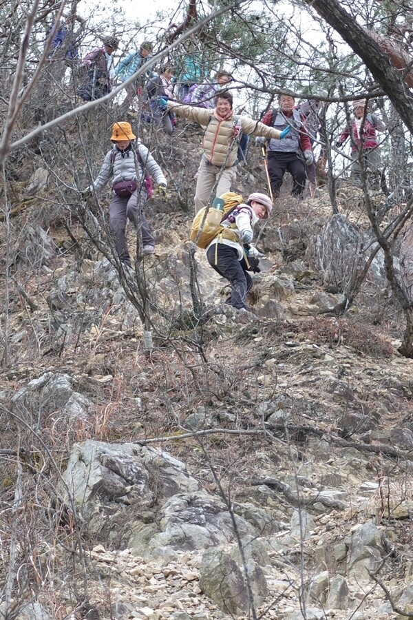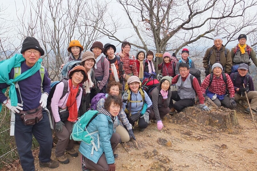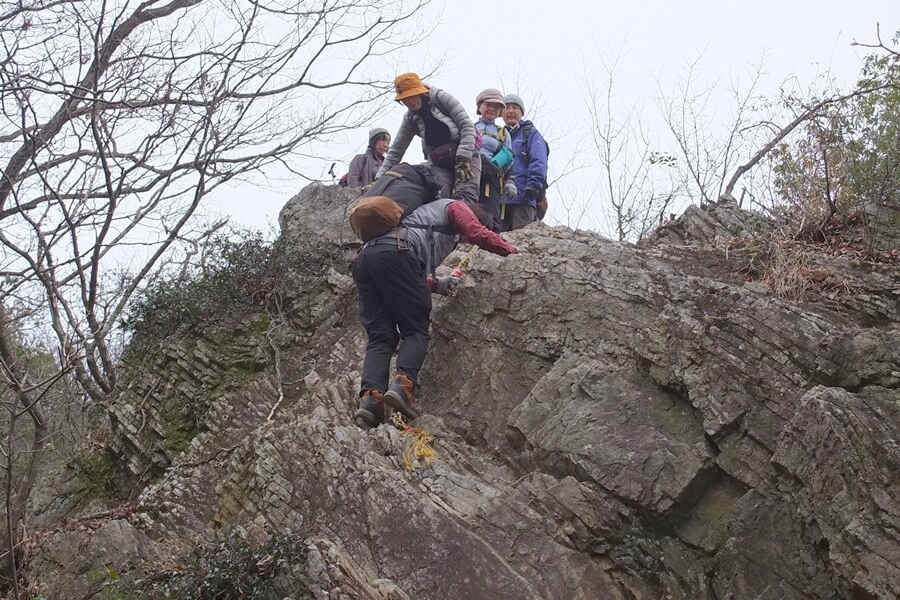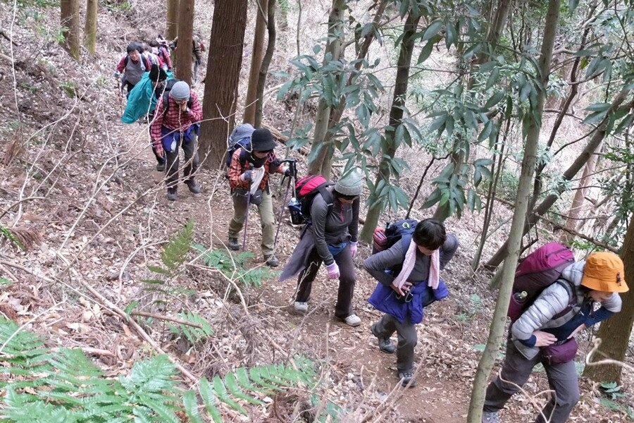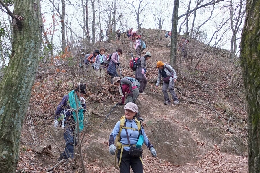 大坊山への登りの途中で、ツツジ山から下りてくる最後尾を見る。