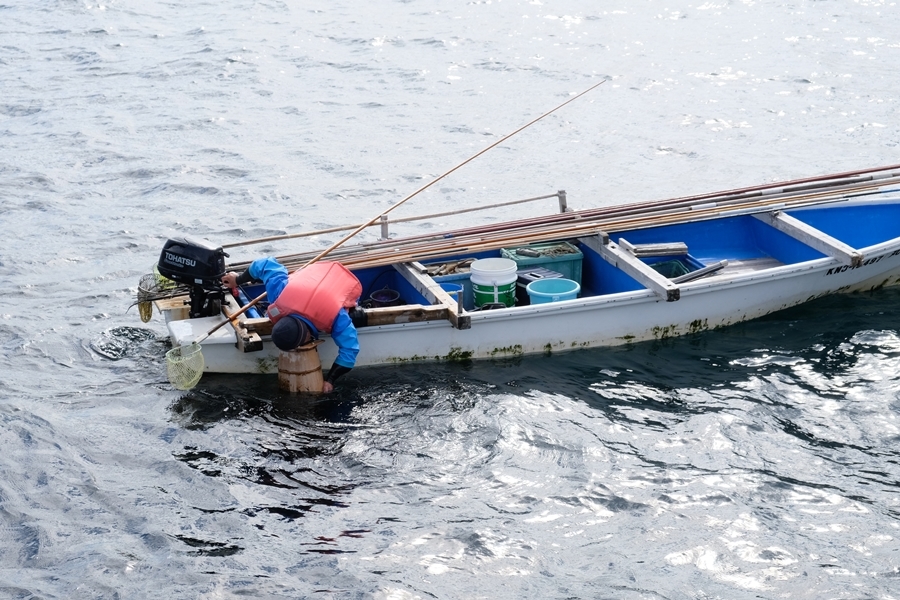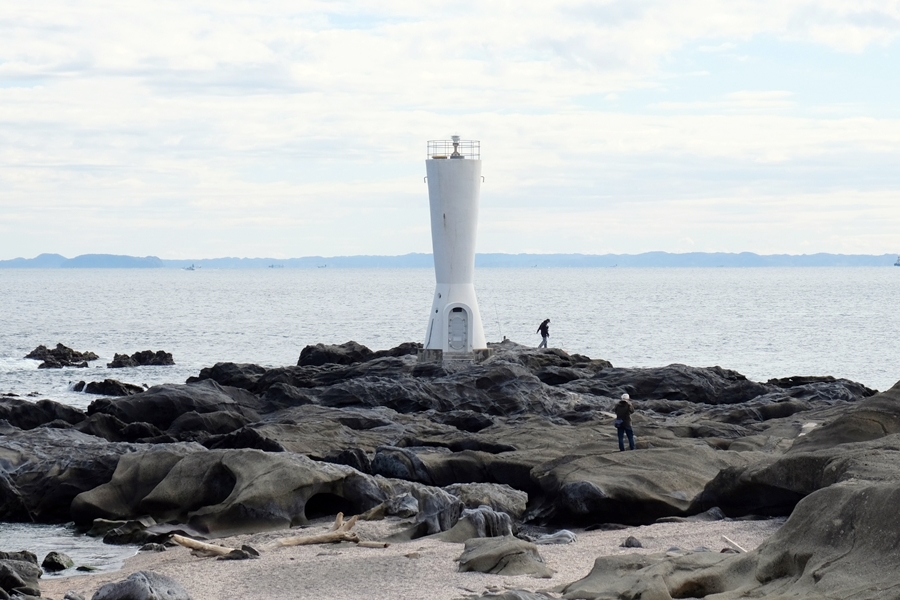 灯台下にはクロダイ釣りのおじさん、すぐそばの海に漁師さんがいる。