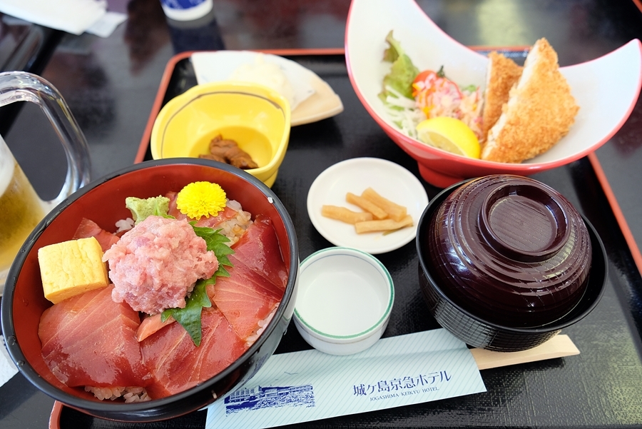 品川から京急のマグロ切符を利用して、歩いた後の昼食はまぐろづくしをいただく。