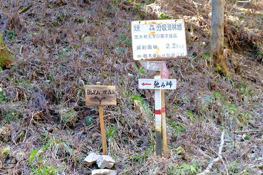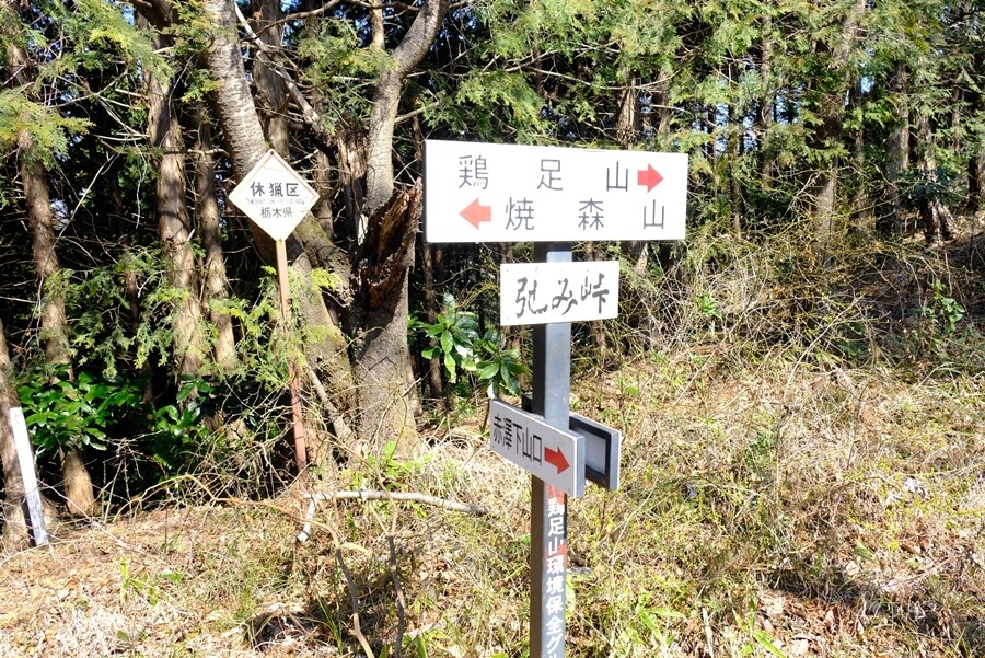 更に進むと、焼森山と鶏足山の分岐点に出る。