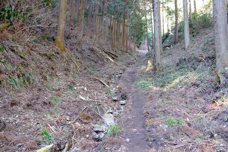 (注:この少し先に細く右側に分かれる道がある。以前は案内板があったらしいが今は無い。いかにも広い真っ直ぐな道ではなく、右側の細い道が正解だったらしいと後で分かった。YAMAPのルートとは根本的に違っている。)