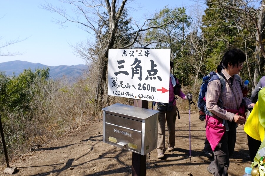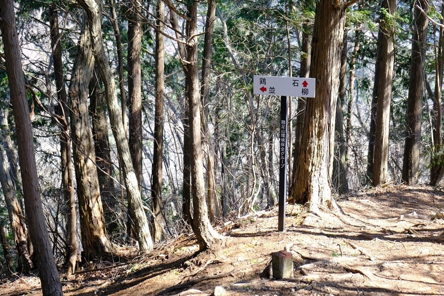並柳登山口と鶏石の分岐。鶏石に行くには少し崖を下る。