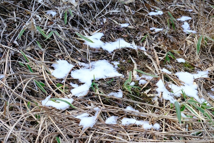 日影には数日前に降ったであろう雪が残っていた。山道は一部滑りやすい状態だった。