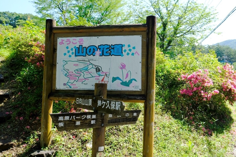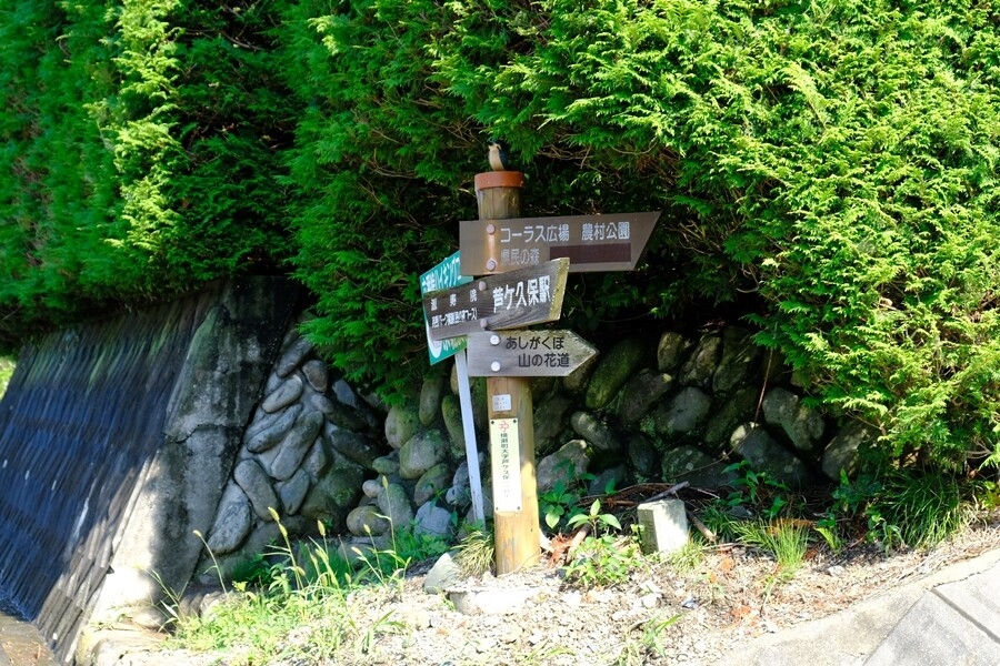 あしがくぼ果樹公園村に入るとすぐ道案内。山の花道方面へ