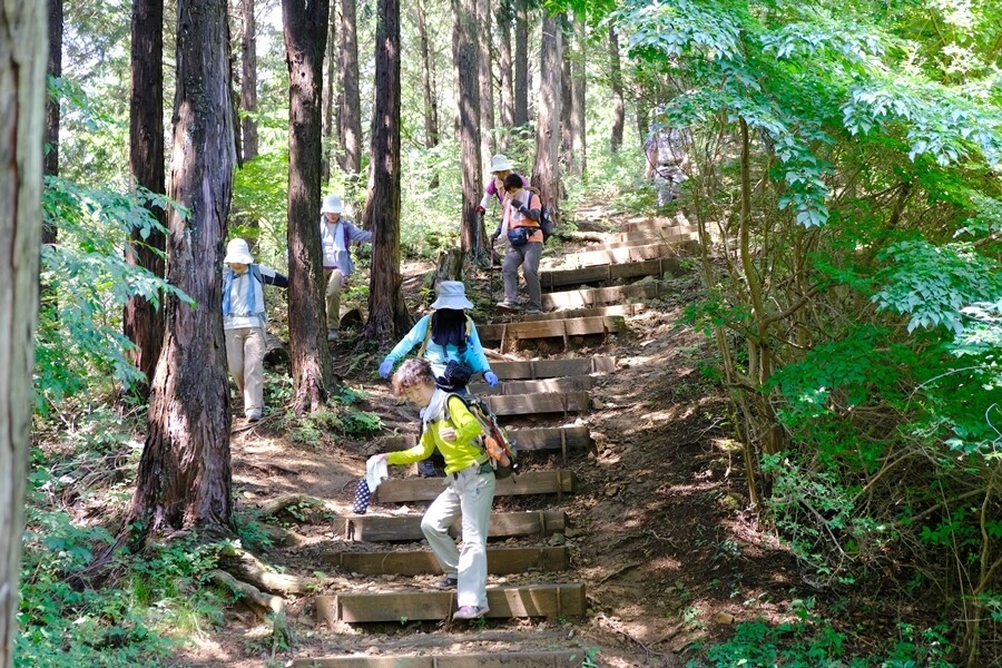 日向山山頂へは急な階段になっている。帰りも慎重に下る。