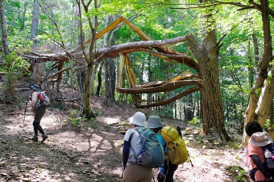 どうしたらこんな風に折れるのか不思議な松の木