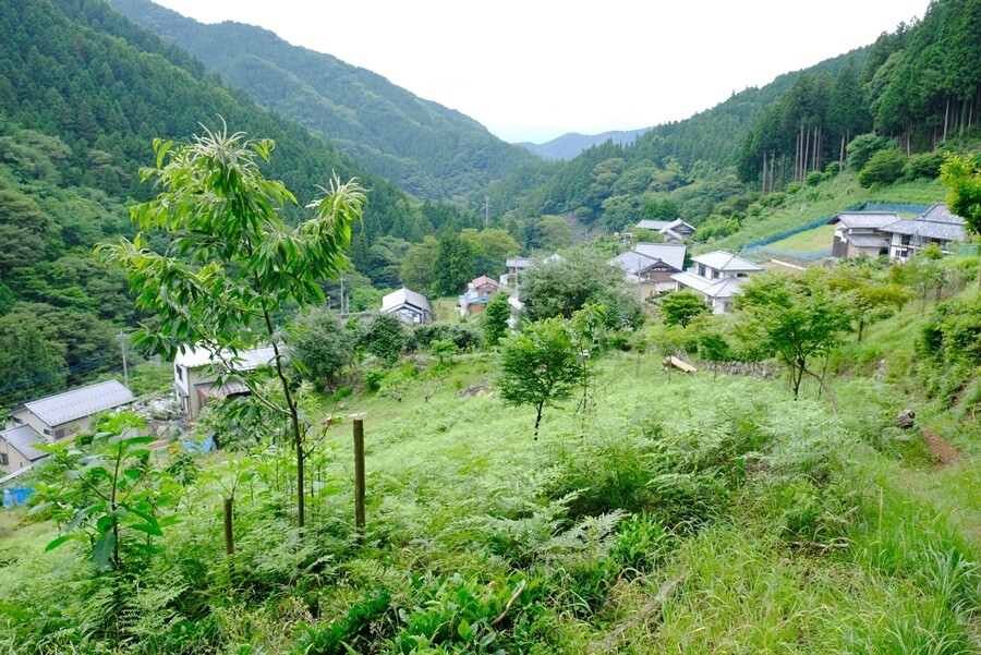 少し舗装道路を進み、急な斜面を登る途中で景色が開ける。
