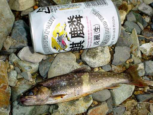 以前テントを張った場所が そっくり川になってました。 それも結構深くなってて、 みごとに岩魚の住処に変化していました。 |
