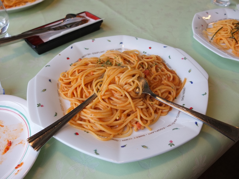 途中昼食を食べられるところがなかなか見つからず、結局一番リフトに近いイタリアンレストランでパスタとピザという湯遊会らしからぬメニューとなりました。