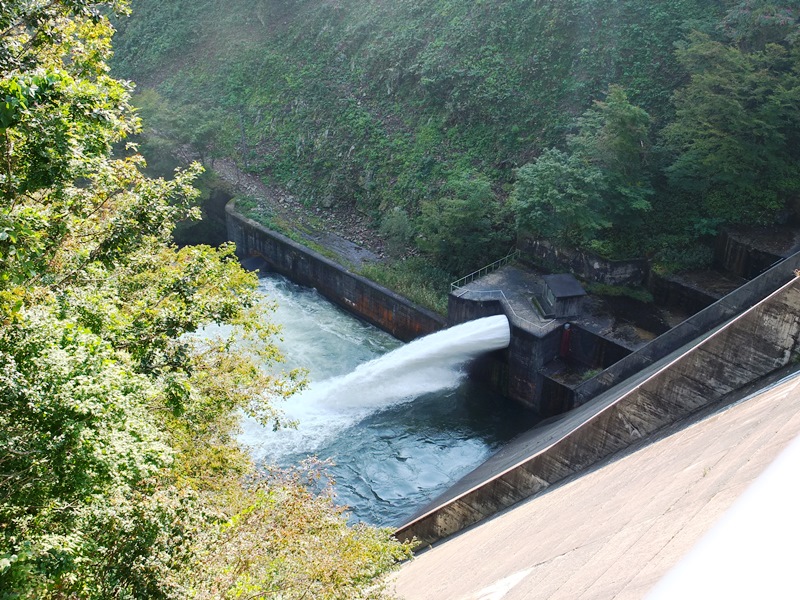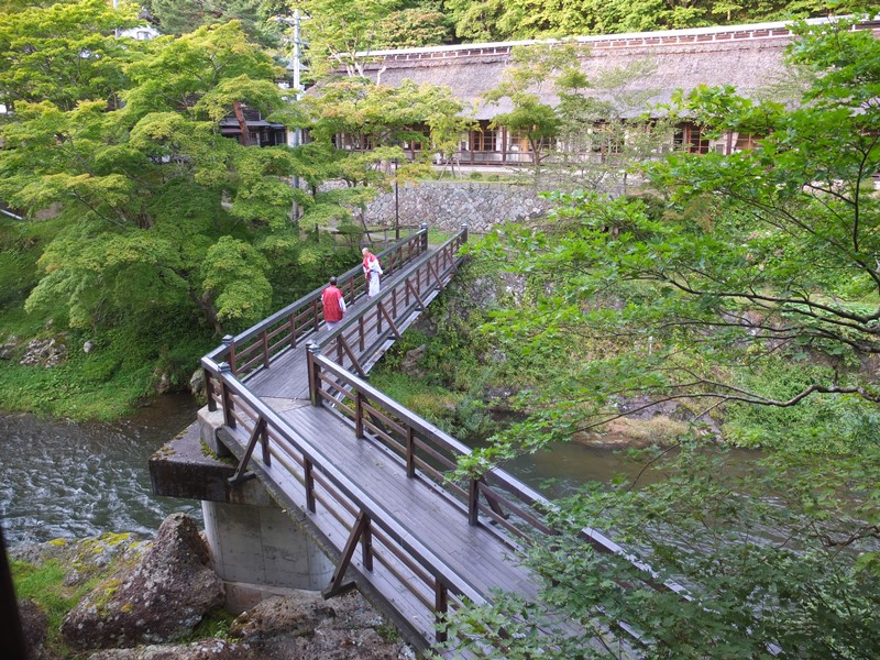 肘折温泉は道路から少し下がった沢沿いにあります。ループ橋を通って行きます。