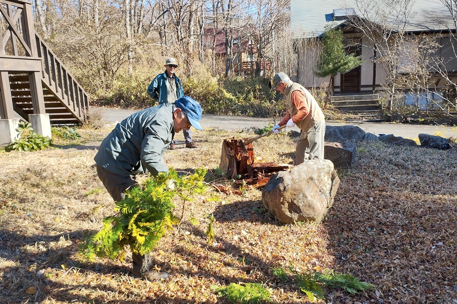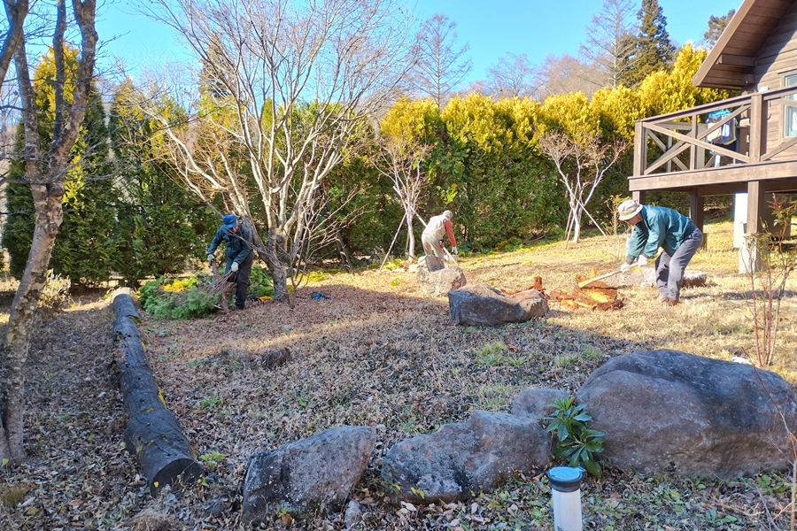 日差しが庭の隅々まで届くと暖かくて作業しやすい。