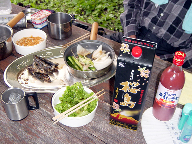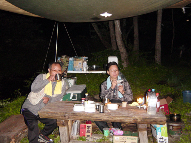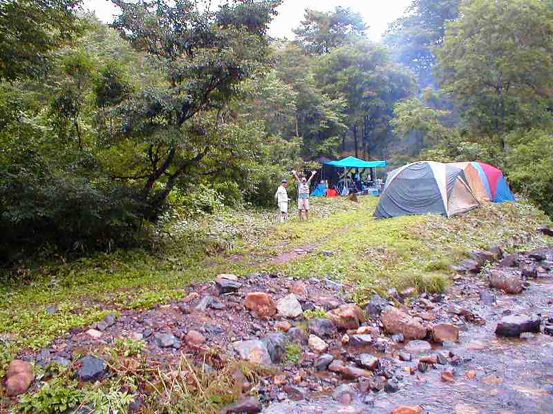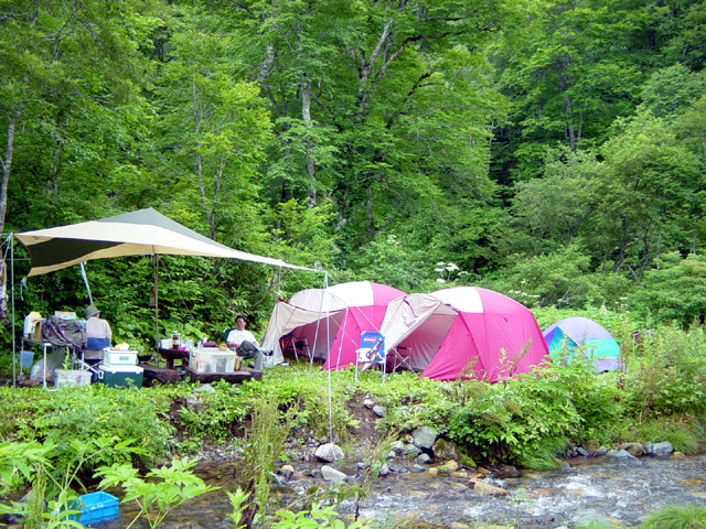 いつもほっとする 緑に囲まれた場所で今回は テントを3つだけです。 |